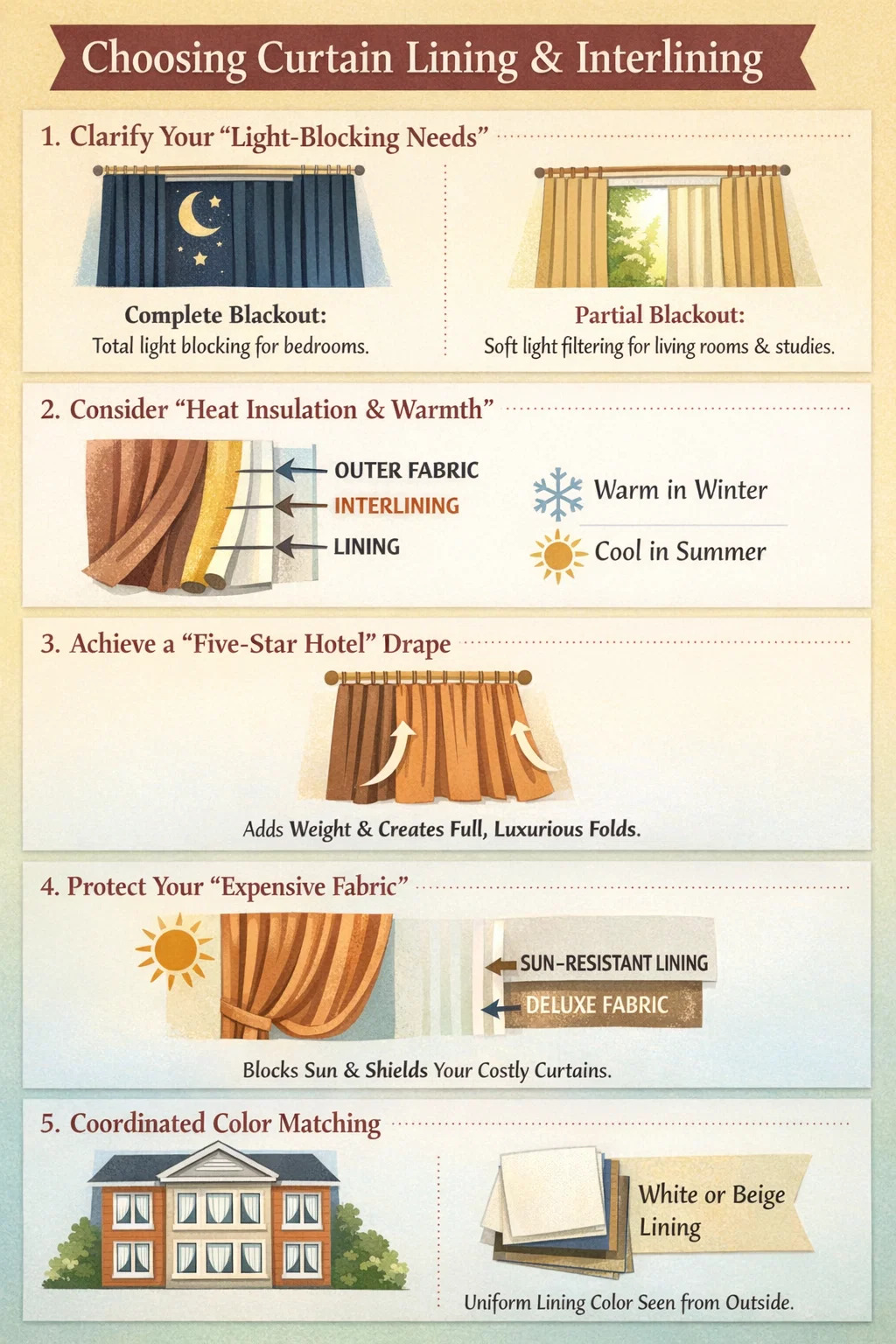Dodavanje težine: Ako je vaša tkanina za zavjese relativno tanka (kao što je svila ili tanki pamuk), može izgledati krhko kada se objesi. Dodavanje teže međupodstave može povećati težinu zavjesa.