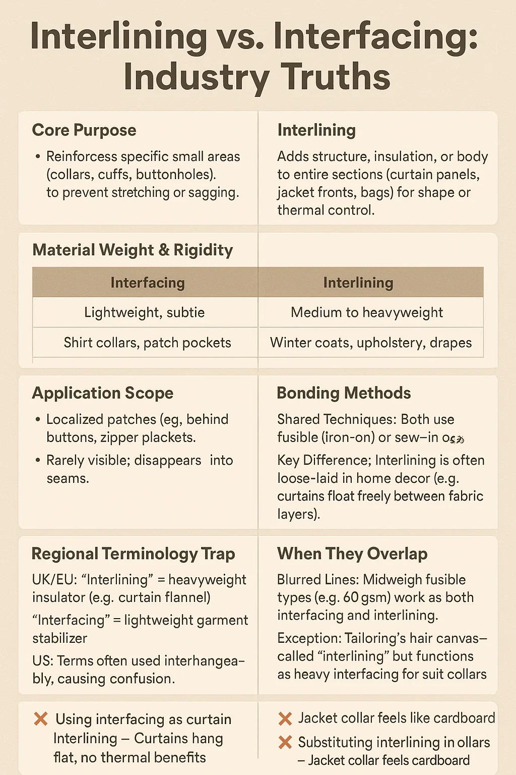 UK/EU: "Intercling" = izolator teške kategorije (npr. Flanel zavjesa). "Interfacing" = lagani stabilizator odjeće.